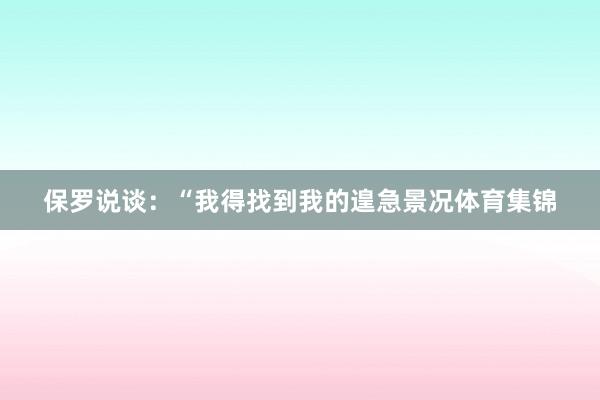 保罗说谈:“我得找到我的遑急景况体育集锦